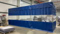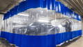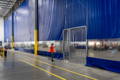 Industrial free standing curtains are supported from the floor up with...